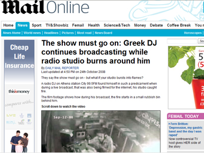 Το γύρο του κόσμου έκανε βίντεο που κυκλοφόρησε στο YouTube και απεικονίζει έναν παραγωγό του City 99,5 της Αθήνας να συνεχίζει την εκφώνηση του δελτίου ειδήσεων, παρότι το στούντιο έχει πάρει φωτιά! Η φωτιά ξεκινά από τον κάδο απορριμμάτων (πιθανώς από κάποιο αναμμένο τσιγάρο) και μέσα σε δευτερόλεπτα, επεκτείνεται στα διπλανά ντουλάπια.Ο δημοσιογράφος φαίνεται να μην αντιλαμβάνεται αμέσως τι συμβαίνει πίσω του, αλλά και όταν το κάνει, δε φαίνεται να πανικοβάλλεται. Προσπαθεί με τα πόδια του να σβήσει την εστία φωτιάς και ταυτόχρονα συνεχίζει τη μετάδοση ειδήσεων. Μέσα σε λίγα λεπτά η φωτιά εξαπλώνεται, ανάβει ο συναγερμός και επεμβαίνουν δύο εργαζόμενοι του σταθμού με πυροσβεστήρες για να σβήσουν τη φωτιά.